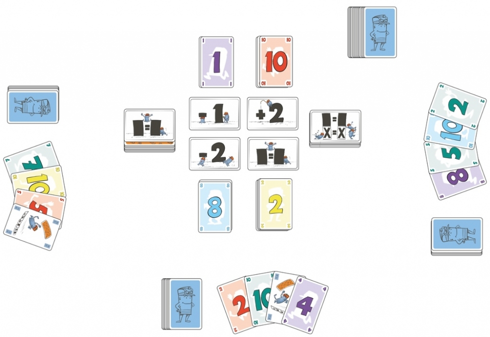 Em Schwupps, você quer se livrar das cartas antes de qualquer outra pessoa, mas às vezes você pode achar difícil despejar cartas de sua mão - mesmo com quatro pilhas de descarte em jogo!