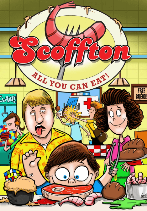 Scoffton é um jogo de alocação de trabalhadores de gerenciamento de barrigas que leva cerca de 60 minutos para jogar e pode acomodar de 2 a 4 jogadores, com idades entre 10 e mais.