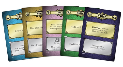 Scoundrel Society é o primeiro jogo Small Box/Big Fun da Action Phase Games em que os jogadores assumem o papel de um membro da sociedade, um encontro de artistas notáveis ​​que se reúnem uma vez por ano para mostrar sua arte, provando que pode roubar a maioria das preciosidades da marca sem ser apanhado. Jogando uma das cinco cartas de ação, a maioria das quais funcionam melhor quando jogadas sozinhas. Mas com cuidado: embora muitas peças de saque tem habilidades únicas que podem afetar o jogo, cada uma carrega um valor de suspeita. Então, quando Constable Cramphorn é revelado a partir das últimos dez cartas do baralho de saque, o jogador com a maior pontuação suspeita é apreendido, deixando o resto para comparar o valor de seus ganhos ilícitos para determinar quem é o mais sujo e podre da Sociedade.