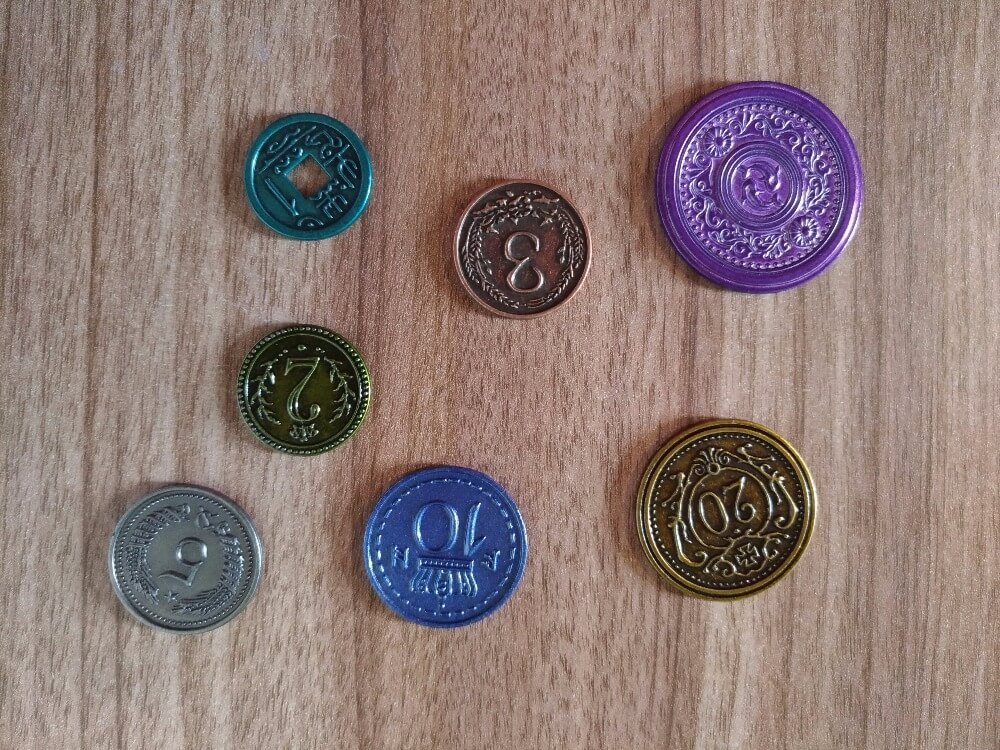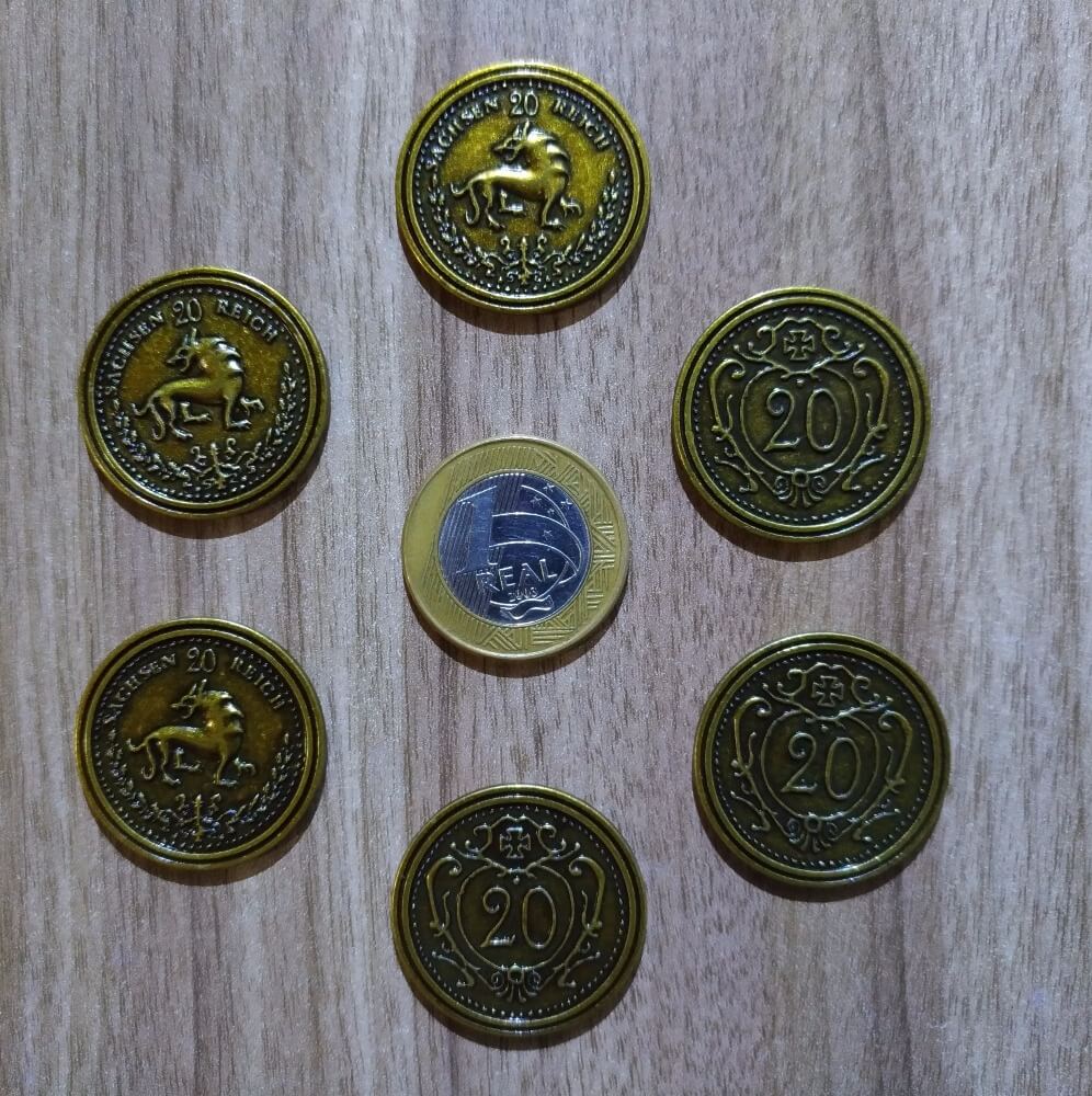 Moedas de metal customizadas desenvolvido e produzido pela Stonemaier Games.
