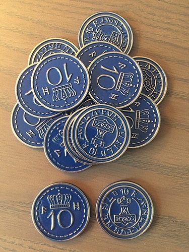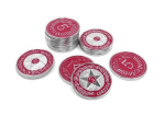 Promo Pack com 15 moedas de metal de $5 pintadas em vermelho.