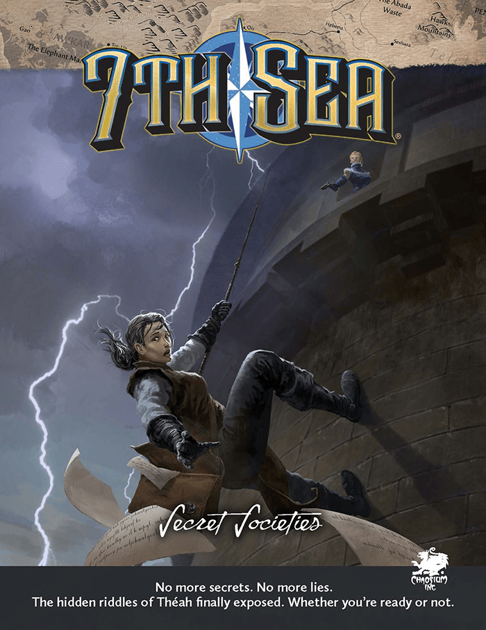 Apertos de mão secretos. Senhas. Mensagens criptográficas. Símbolos alegóricos. No continente de Théah, sociedades secretas operaram quase invisíveis, manipulando a vida de monarcas e mercadores e, pela primeira vez, seus segredos foram revelados. Mas cuidado! Esse conhecimento sempre vem com um preço que nem todos são fortes o suficiente para suportar.