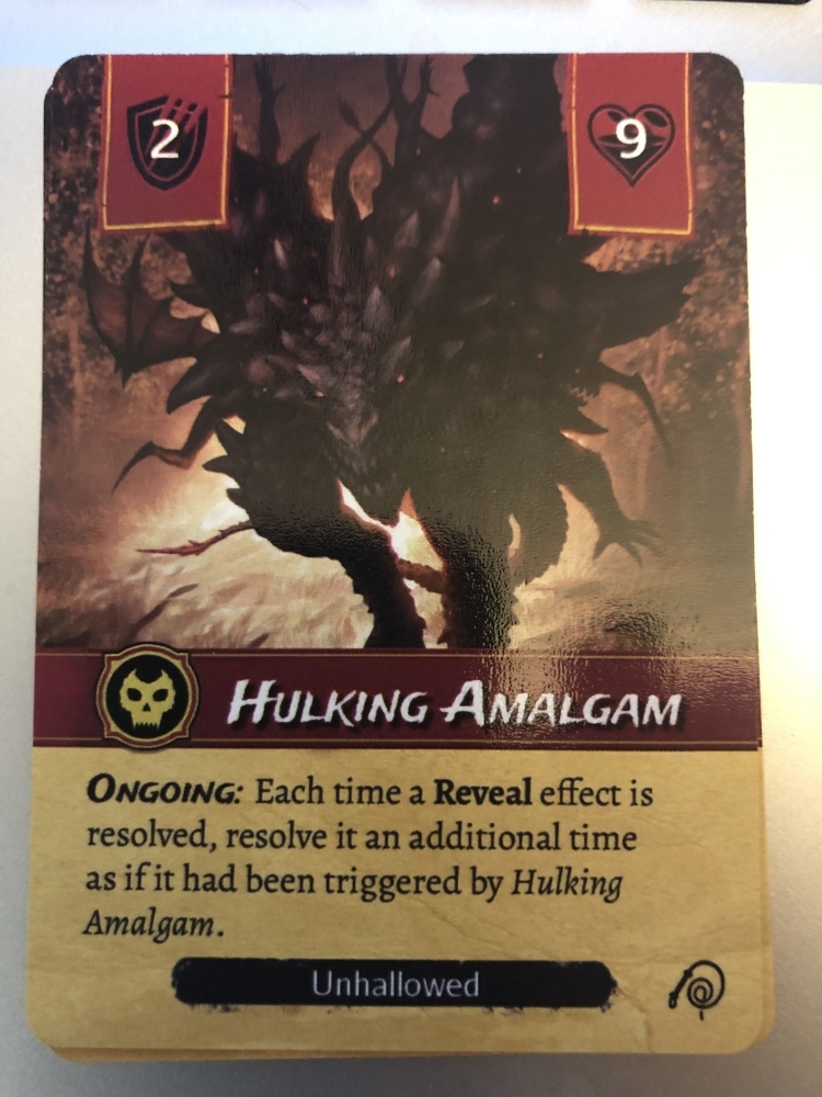 Contínuo: Cada vez que um efeito de Revelação for resolvido, resolva-o uma vez adicional como se tivesse sido acionado por Hulking Amalgam.