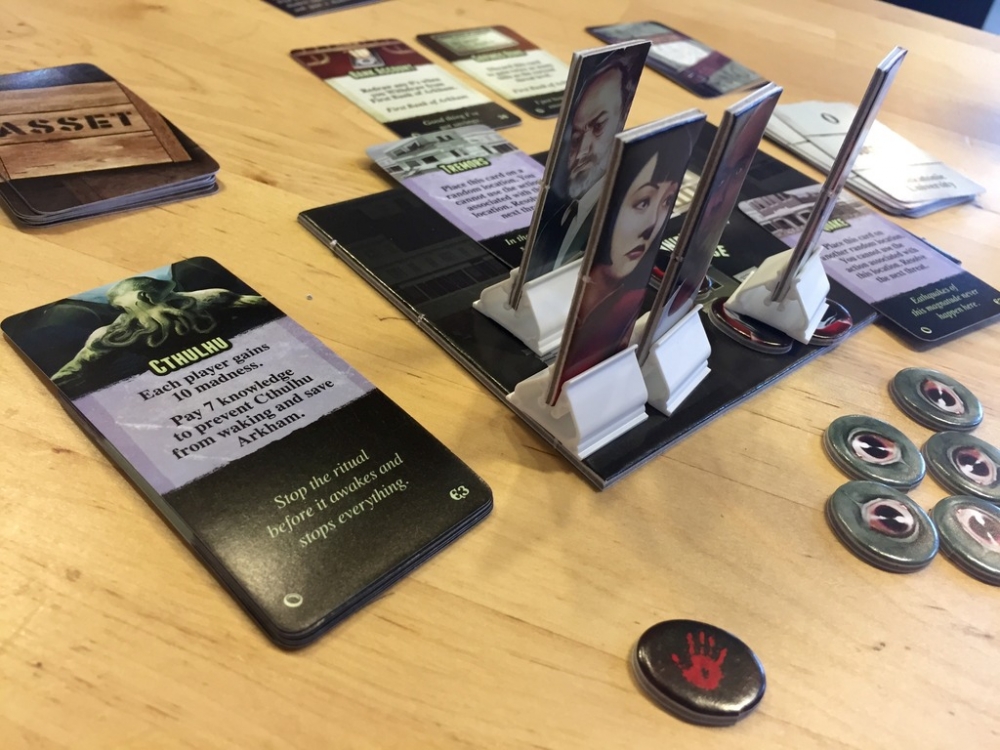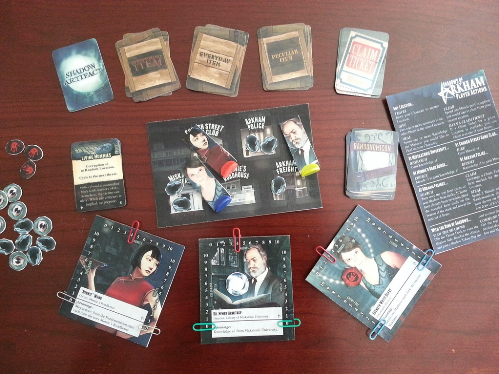 Em Shadow of the Elder Gods, 1 a 4 jogadores assumem os papéis de moradores de Arkham, trabalhando juntos para impedir que os terrores cósmicos destruam a realidade. Shadow foca nas consequências de forças escuras conspirando contra os jogadores, em vez de focar no combate. Os jogadores passam os turnos gastando ações para viajar a pontos de Arkham para obter Conhecimento, contratar Músculos, coletando Espólios e lidando com as Ameaças.