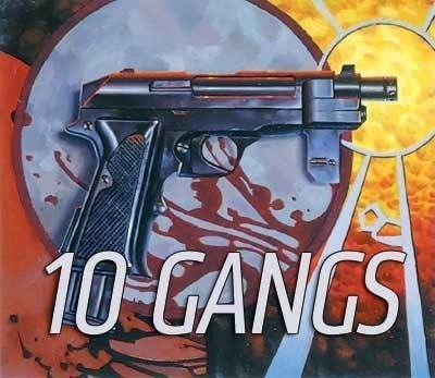 10 Gangs é um produto Shadowrun, projetado para complementar qualquer campanha e utiliza o sistema de classificação Gang da Vice. Cada gangue vem com ganchos de enredo e estatísticas para gamemasters e jogadores usarem para ideias de corrida, contatos e ficar de olho na competição.