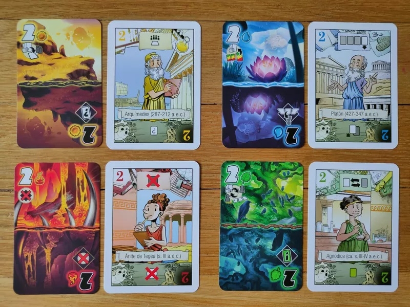 Cada um de vocês começa com uma mão de cartas de quatro naipes, e seu objetivo como equipe é descartar tantas cartas quanto possível - mas cada carta jogada deve ter um valor mais alto do que a carta jogada anteriormente do mesmo naipe. Se uma carta recém-jogada for a sucessora direta da última carta jogada dessa cor, então você orienta a carta para mostrar seu lado escuro e sofre a penalidade dessa carta, com a penalidade verde, por exemplo, forçando a próxima carta jogada a ser verde enquanto a penalidade azul exige que você dê a outro jogador uma das cartas viradas para cima disponíveis no Oracle.