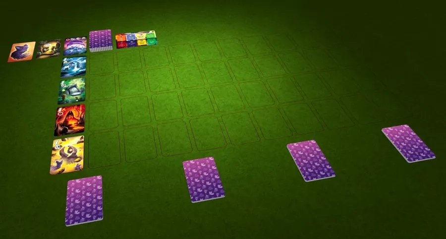 Cinco santuários são jogados - um santuário multicolor e um de cada cor - e antes ou depois de sua jogada de cartas, você pode escolher virar um santuário para baixo para usar o bônus daquela cor.
