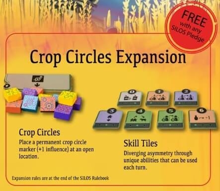 Esta expansão apresenta dois novos módulos. O Módulo Crop Circles introduz outro elemento de estratégia de longo prazo. O Módulo Permanent Skill Tiles apresenta assimetria divergente. Você pode decidir incluir um ou ambos os módulos em suas jogadas de SILOS, mas só recomendamos o Módulo Permanente de Peças de Habilidade para jogadores experientes.
