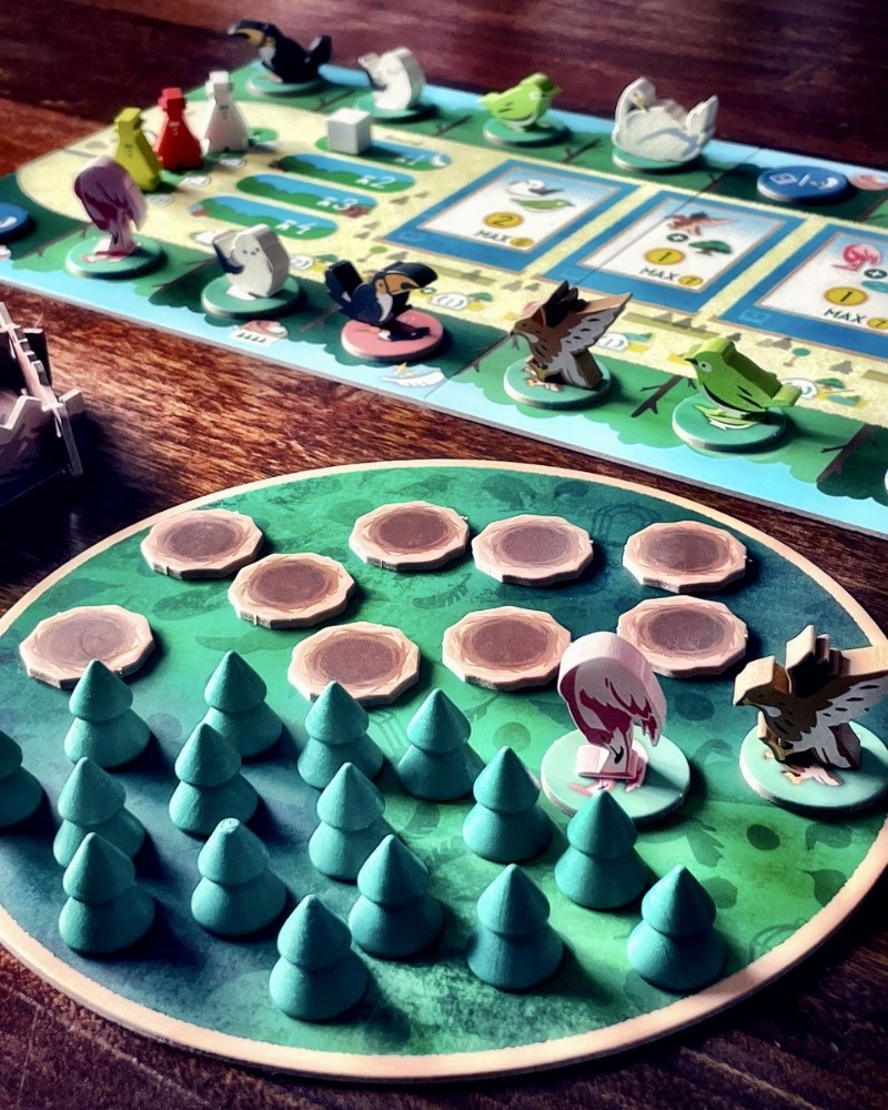 Os jogadores trazem fichas de pássaros de madeira do tabuleiro principal ou da floresta para seus tabuleiros pessoais. Eles devem escolher cuidadosamente onde colocar cada pássaro, considerando o espaço limitado em cada área, bem como árvores, lagos e peças de objetivo. Os pássaros podem formar pares e, quando encontram um ambiente favorável, põem ovos. Coletar esses ovos é fundamental para vencer o jogo.