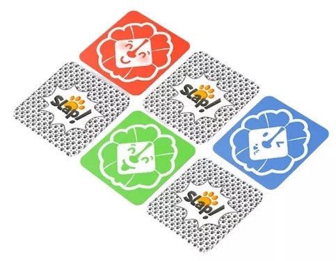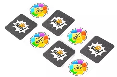Você espalha as cartas na mesa, procura a carinha nas três cores e "SLAP"!