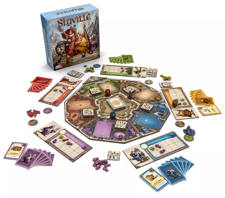 Em Slyville, os jogadores se tornam chefes de guildas que operam em uma cidade medieval e enviam seus capangas de confiança para fazer negócios e fechar negócios obscuros. A cada turno, eles têm sete cartas em suas mãos e devem jogar quatro delas em espaços nos tabuleiros de distrito colocados no centro da mesa. Usando suas ações de cartas, eles fazem lances para adquirir bens em cinco tipos que podem ser gastos posteriormente em blocos de negócios. Se um jogador coletou as mercadorias exigidas por uma negociação escolhida, ele deve jogar uma carta de negociação e gastar as mercadorias apropriadas. As peças valem de 20 a 40 pontos, e o jogador que reunir 100 aciona o final do jogo. Depois disso, o restante dos jogadores faz sua última jogada e os pontos são contados. O maior pontuador vence e se torna o mestre de guilda mais influente da cidade!