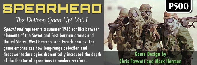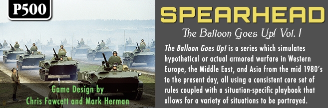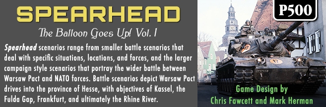 The Balloon Goes Up! é uma série que simula uma guerra blindada hipotética ou real na Europa Ocidental, Oriente Médio e Ásia desde meados da década de 1980 até os dias atuais, todos usando um conjunto central consistente de regras juntamente com um manual de situação específica que permite uma variedade de situações a serem retratadas. O primeiro jogo da série, Spearhead, representa um conflito no verão de 1986 entre elementos dos exércitos soviético e da Alemanha Oriental e os exércitos dos Estados Unidos, da Alemanha Ocidental e da França. O jogo enfatiza como as tecnologias de detecção e poder de fogo de longo alcance aumentaram drasticamente a profundidade do teatro de operações na guerra moderna. Esse “Envolvimento Profundo” travado bem atrás das linhas de frente pode determinar o resultado de uma campanha antes mesmo que as forças terrestres opostas realmente se enfrentem. Os jogadores devem aprender a lutar e vencer o Deep Engagement para alcançar a vitória geral, levando em consideração as diferentes maneiras pelas quais as forças dos dois lados foram preparadas para lutar.
