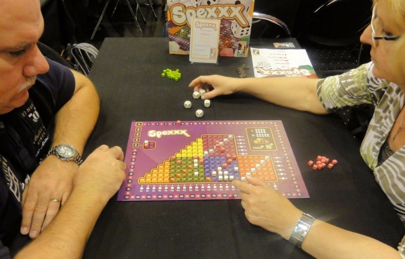 Spexxx poderia ser descrito como uma combinação de Yahtzee e Connect Four, mas é mais que isso. Depois de um jogador rolar os dados, ele coloca um cubo no espaço do tabuleiro que representa a combinação dos dados rolados. O objetivo é marcar o maior número de pontos ao colocar cubos em espaços. Quando os jogadores colocam três ou mais dos seus próprios cubos em uma fila, eles marcam pontos. Eles podem assumir riscos, buscando as combinações difíceis e marcando mais pontos em conformidade. O jogo termina quando os últimos cubos de todos os jogadores são colocados no tabuleiro.