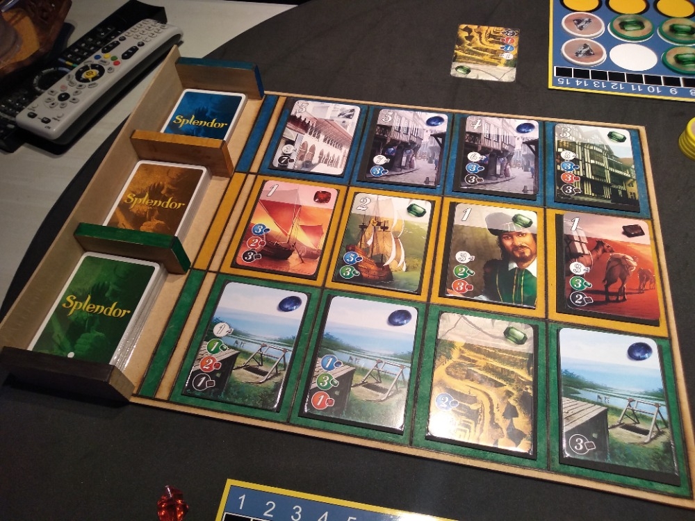 Criei um suporte para as cartas, e um plate para contagem de pontos e controle das pedras no jogo, ajudou muito, pois você monitora melhor a pontuação de todos jogadores.