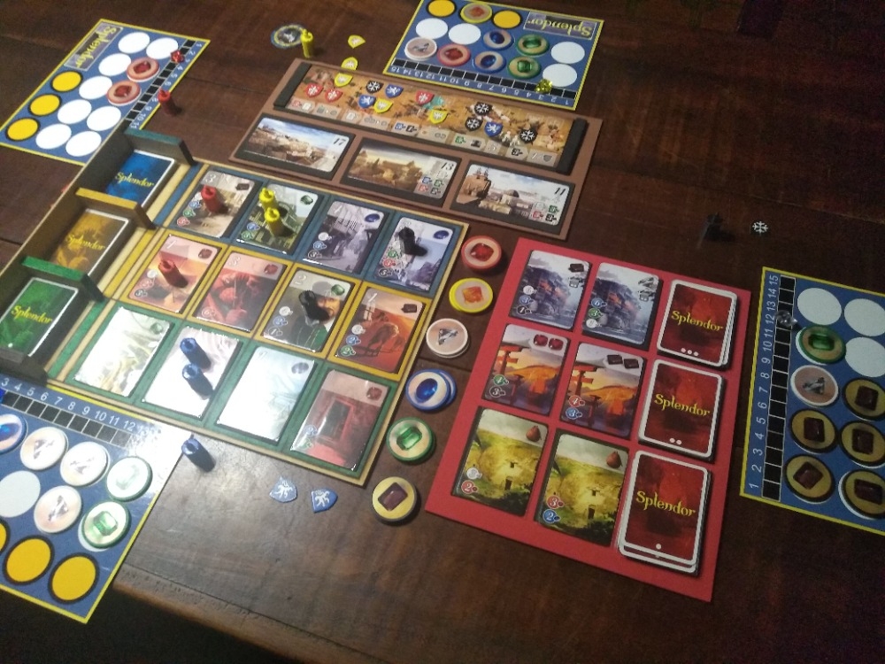 Splendor com as expansões Cidades. Criei os playmats para ajudar na organização das partidas.