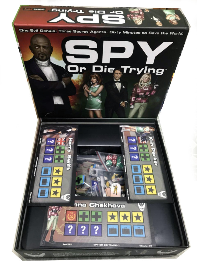 Spy or Die Trying é um jogo de tabuleiro assimétrico que coloca agentes das Nações de Paz (PEN) contra o poder da Ordem Mundial Secreta (SWORD).