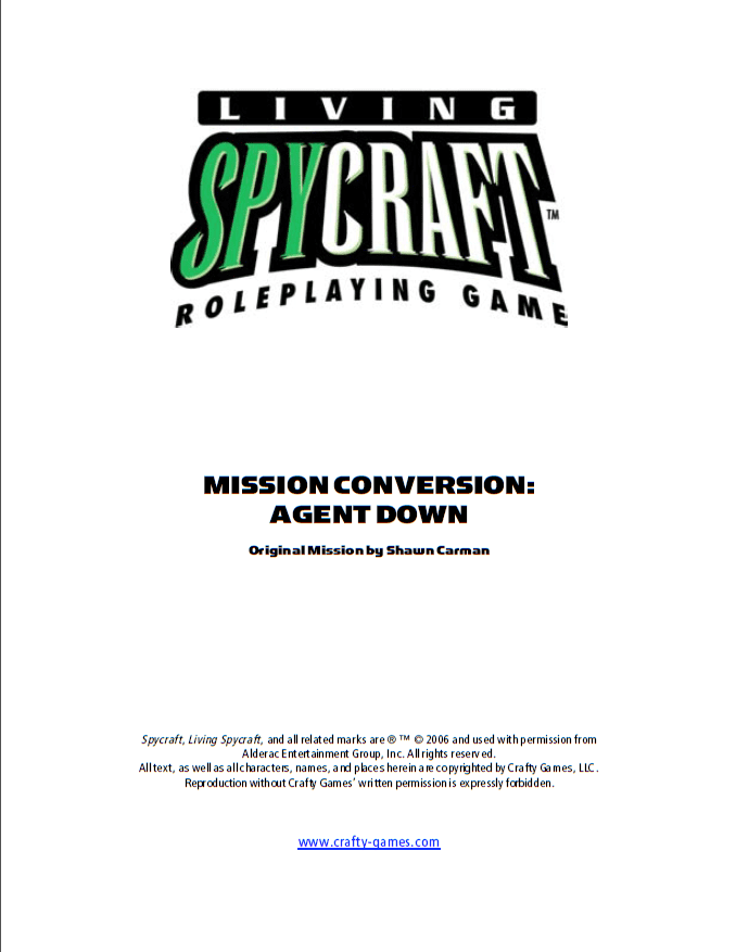 Notas de conversão para jogar SPA1-01: Agent Down with Spycraft 2.0 rules.