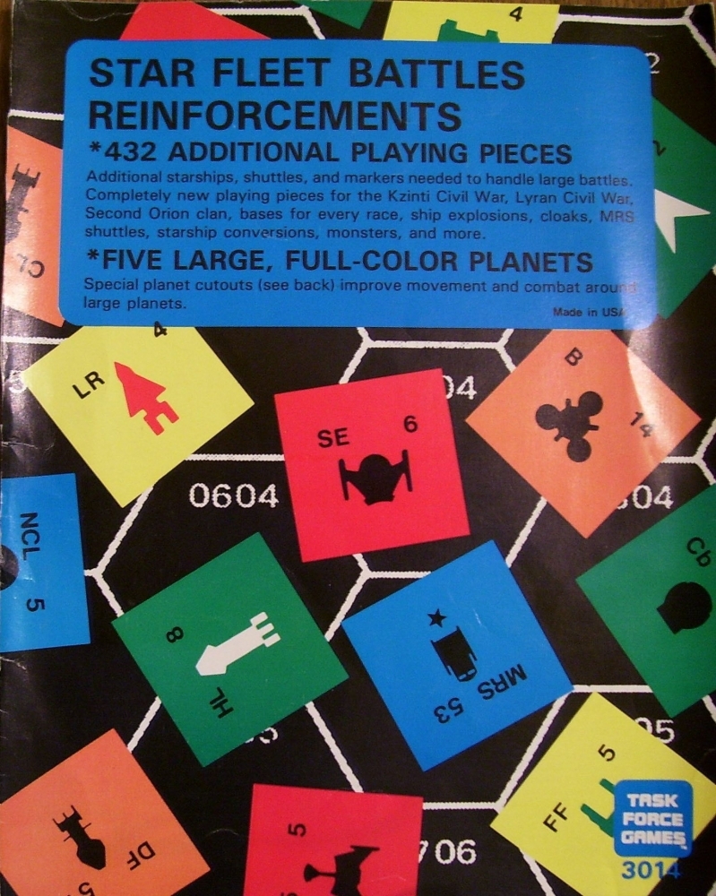A contracapa de Star Fleet Battles Reinforcements incluía cinco (5) planetas coloridos que poderiam ser cortados