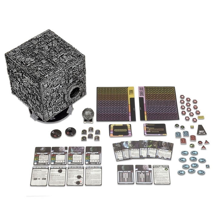 Star Trek: Attack Wing - Cubo Borg com comporta para Esfera são duas expansões em uma, sendo uma delas um cubo Borg de grandes dimensões (20 cm de cada lado) que também possui cartas e fichas de nave para o Cubo 384 e a Esfera 936 que o acompanha. A outra metade dessa expansão é um cenário cooperativo no qual de 1 a 5 jogadores podem lutar contra o Cubo 384, cujas ações e ataques são automatizados e aleatórios!