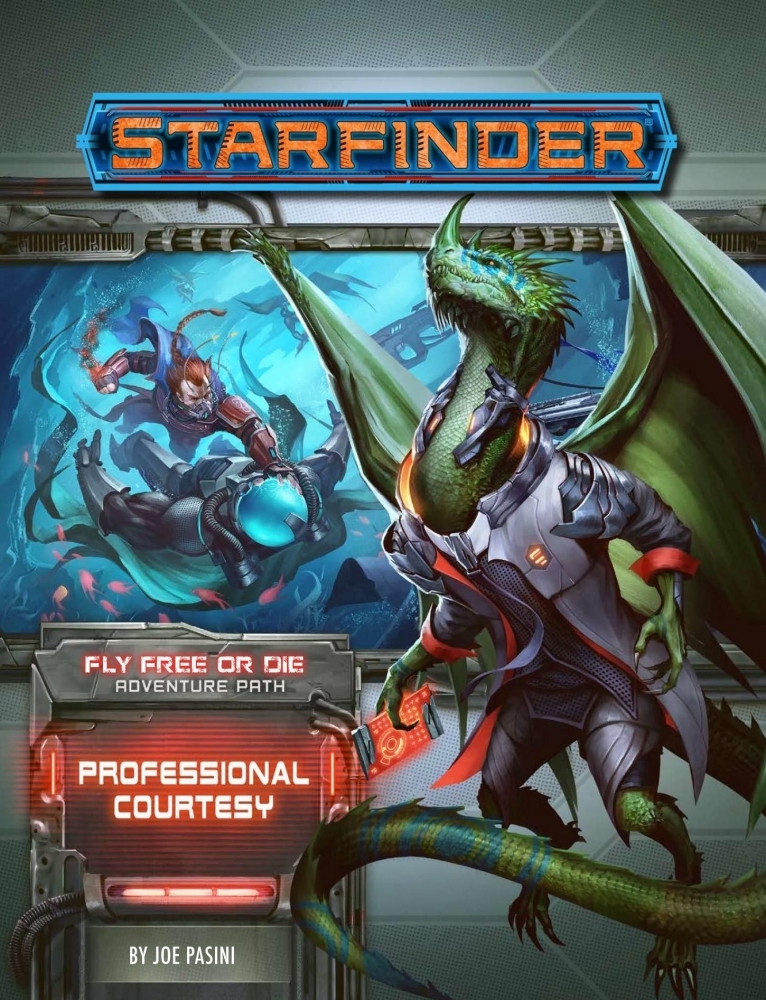 "Professional Courtesy" é uma aventura Starfinder para quatro personagens de 5º nível. Esta aventura continua o Fly Free or Die Adventure Path, uma campanha mensal de seis partes na qual os jogadores assumem o papel de uma tripulação mercante com uma nave experimental, tentando ficar rico, escapar de assassinos interplanetários e superar seus rivais. Este volume também detalha o mundo aquático de Entha e seus muitos habitantes perigosos e inteligentes, um navio de guerra da Companhia bem armado, equipamentos e opções de personagens para aventuras subaquáticas e uma série de "Serviços Secundários" - mini-aventuras curtas que o GM pode inserir a campanha a qualquer momento.
