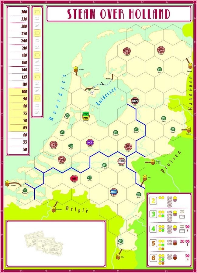 Steam over Holland é um jogo de economia em que os jogadores investem e controlam empresas ferroviárias. O jogo é parte da família de jogos 18xx.