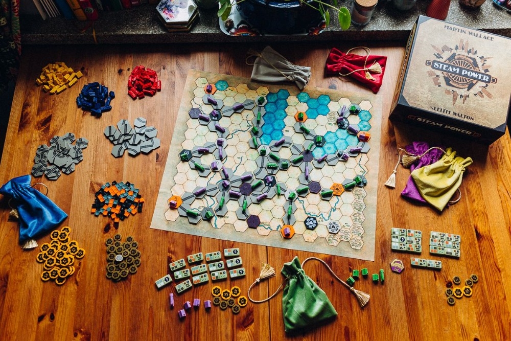 No Steam Power, os jogadores "correm" para construir a melhor rede ferroviária para cumprir suas obrigações contratuais e ganhar mais dinheiro.
