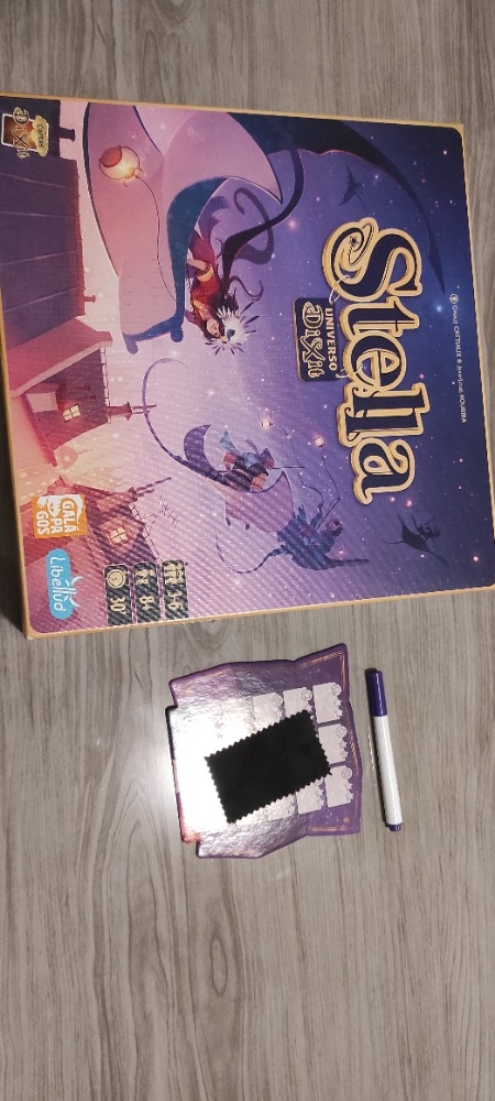 Stella é um jogo competitivo no universo Dixit. Em cada rodada, os jogadores interpretam as cartas Dixit em um tabuleiro depois de receber uma palavra de pista compartilhada. Cada jogador olha as cartas e secretamente associa essas cartas com a palavra da pista, marcando em suas lousas pessoais as cartas que escolheram. Selecionar as mesmas cartas dos outros jogadores permite que você marque mais pontos. Por outro lado, selecionar um cartão que ninguém mais escolhe pode custar muito caro.