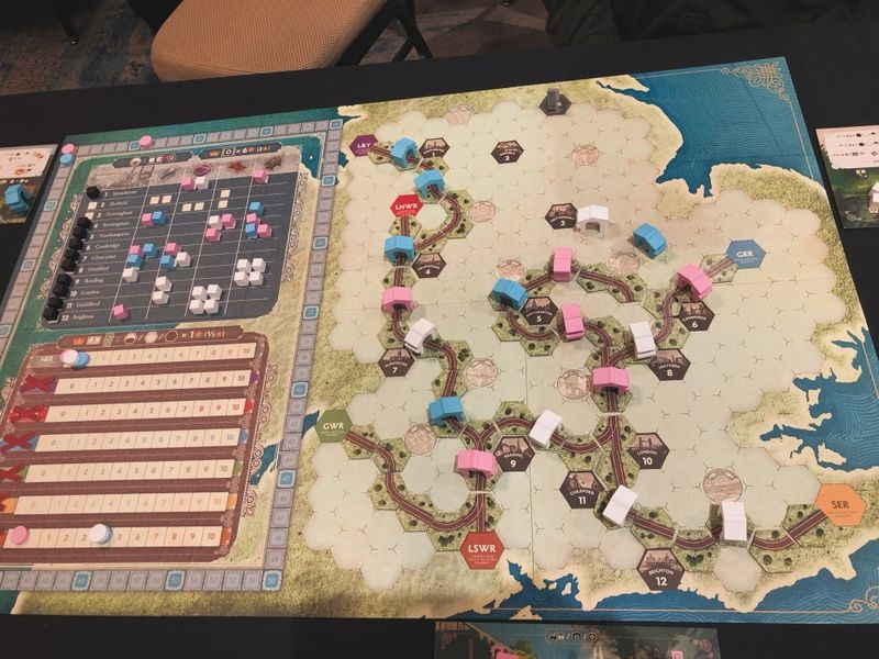 Reiner Knizia expande sua frota de jogos de assentamento de peças com este jogo sobre a colisão de ferrovias no início de 1800 na Inglaterra. Existem sete empresas ferroviárias diferentes que os jogadores podem expandir. Cada vez que você estende uma linha férrea, os outros acionistas podem vetar sua ação do turno, mas isso pode custar-lhes suas ações da companhia. Quando as ferrovias de duas empresas se tocam, as ferrovias se fundem para se tornarem uma só. O jogo termina quando resta apenas uma empresa ou não há mais peças de trilho, e o vencedor é o jogador que ganhou mais dinheiro ao longo do jogo.