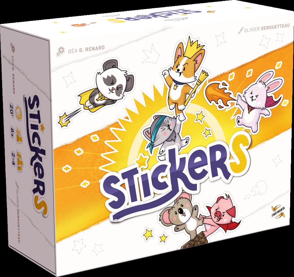 Em Stickers, os jogadores competem para coletar o maior número de cartas de cada família de cartas. Porém, cada família não vale o mesmo! Para ganhar, você precisará coletar as cartas mais raras das famílias mais raras!
