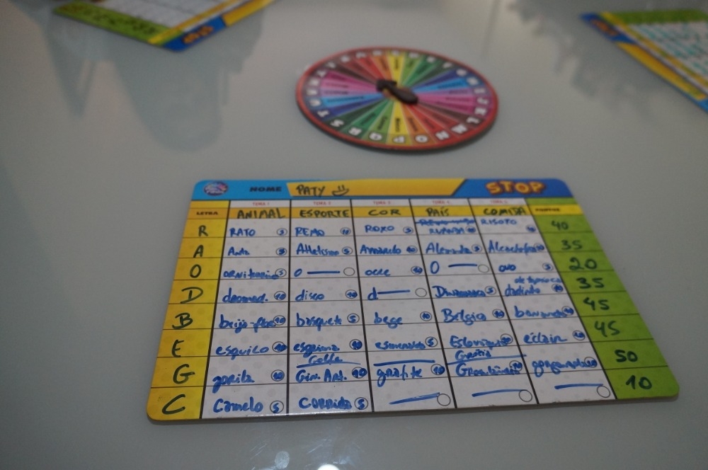 Girada a roleta e definida a letra, cada jogador deve colocar a letra no campo correspondente na sua cartela e imediatamente escrever as palavras com a letra anotada nas colunas com os temas pré-definidos no início.