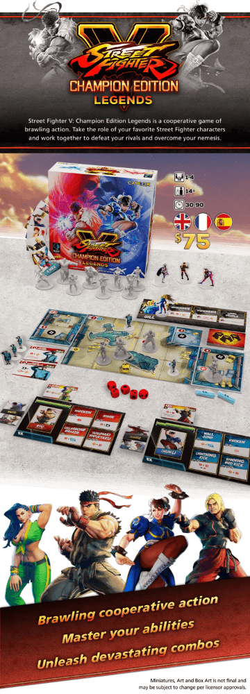 Street Fighter V: Champion Edition - Legends é um jogo cooperativo de ação de luta para 1 a 4 jogadores projetado por Mitch Schroeder.
