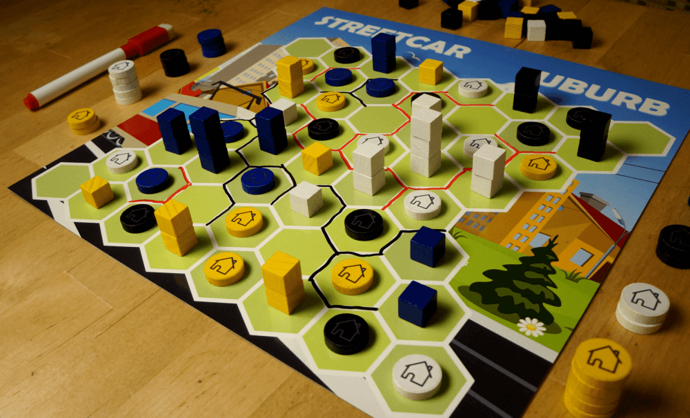 Streetcar Suburb não tem sorte ou informações ocultas e recompensa o jogo estratégico. A configuração aleatória é neutra para ambos os jogadores, garantindo que cada jogo seja único e justo.