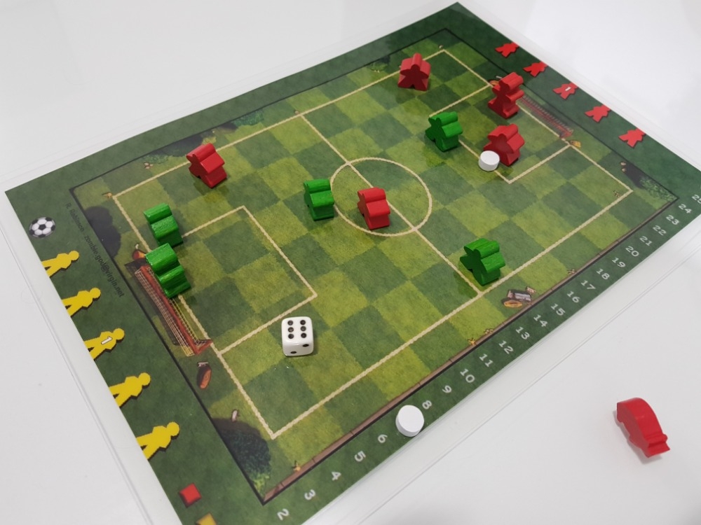 O dado determina o número de espaços a mover com seus jogadores. Se você chegar na bola, você a chuta o número de casas ainda não usadas no dado. Quem marcar mais gols ganha!