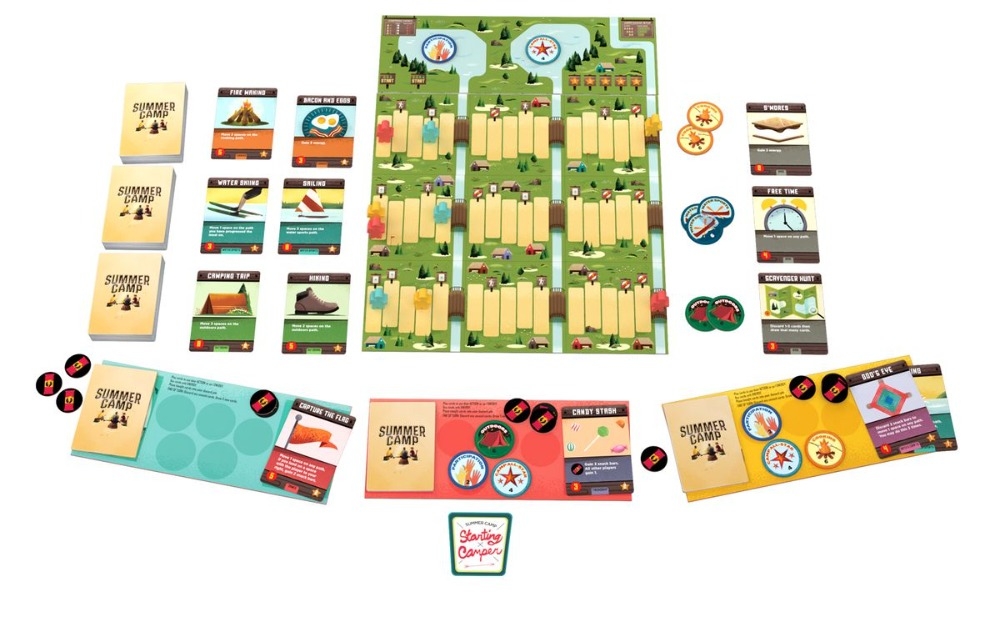 O Summer Camp difere cada jogo, pois o jogo inclui sete baralhos de distintivos de mérito diferentes junto com o baralho base: aventura, artes e ofícios, culinária, amizade, jogos, atividades ao ar livre e esportes aquáticos. Cada jogo usa três baralhos de distintivos de mérito que podem ser misturados e combinados para cenários de jogo exclusivos.