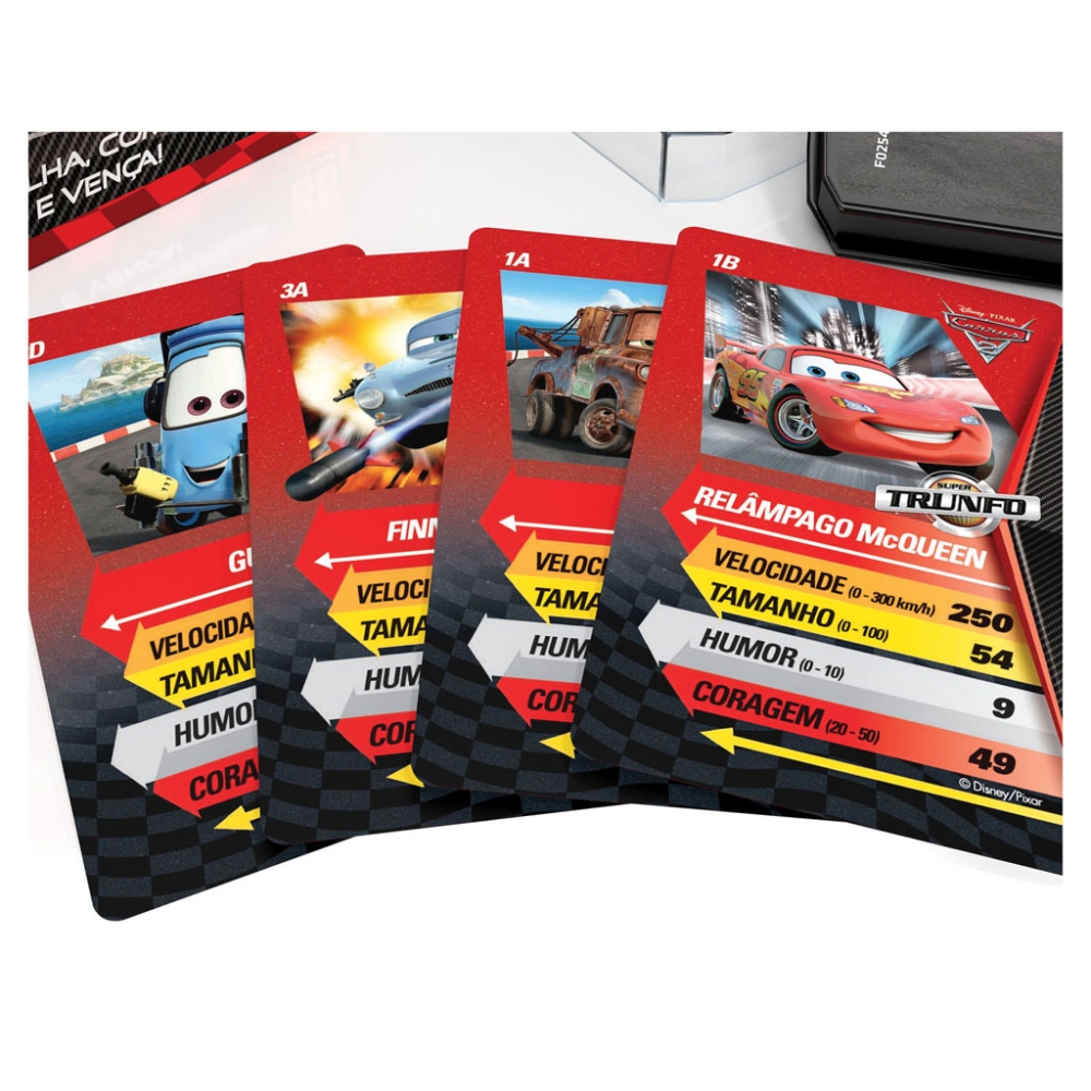 Super Trunfo Carros 2 traz 32 fotos incríveis dos carros mais engraçados do cinema. Escolha sua habilidade, compare com os outros jogadores e vença quem tiver o valor mais alto.