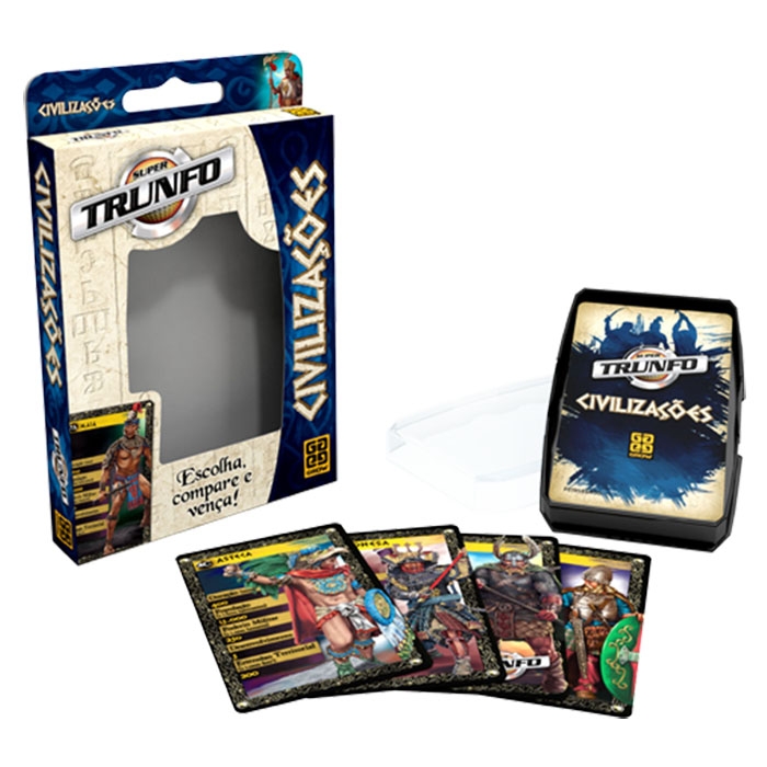 Versão do famoso jogo Super Trunfo, com diferentes civilizações da história. Escolha uma característica; compare as cartas de todos os jogadores; e quem tiver o maior valor leva todas as cartas em disputa. Ganha quem conseguir todas as cartas.