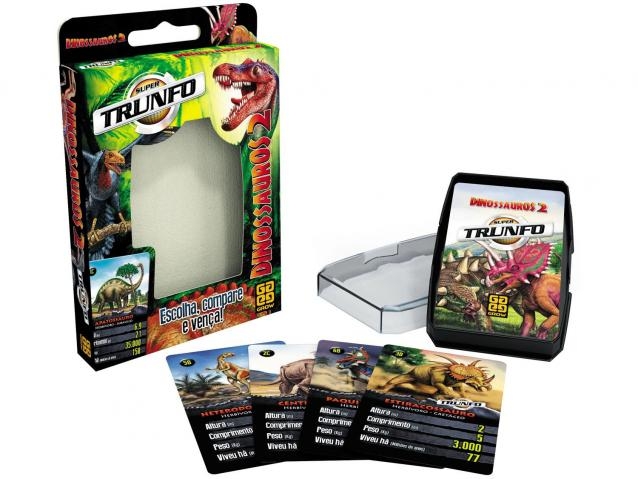 Super Trunfo Dinossauros 2 traz 32 cartas com ilustrações e informações sobre os maiores seres-vivos que já habitaram a Terra. Em qual item o dinossauro da sua carta é o melhor? Será em altura? Em peso? Ou você tem o Super Trunfo? Escolha, compare e vença esta emocionante disputa!