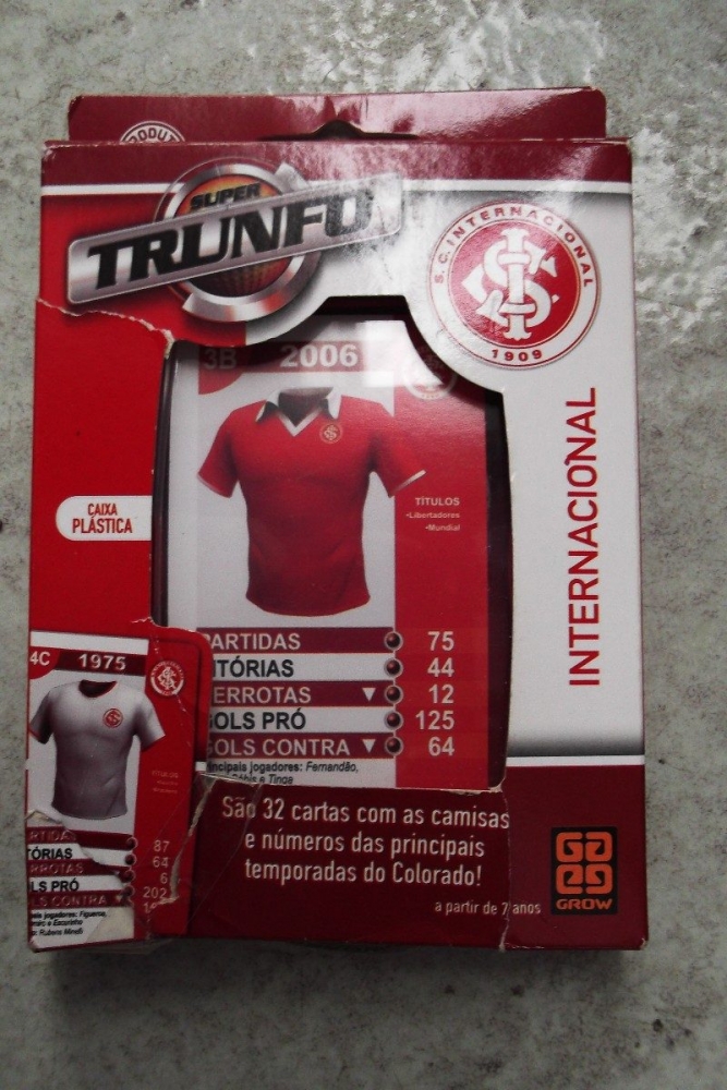 Versão do famoso jogo Super Trunfo, com camisas usadas em diversas épocas pelo time do Internacional. Escolha uma característica; compare as cartas de todos os jogadores; e quem tiver o maior valor leva todas as cartas em disputa. Ganha quem conseguir todas as cartas.