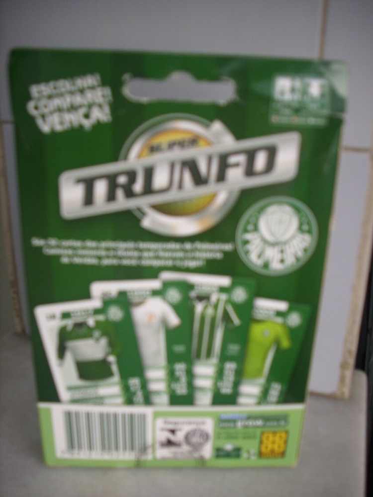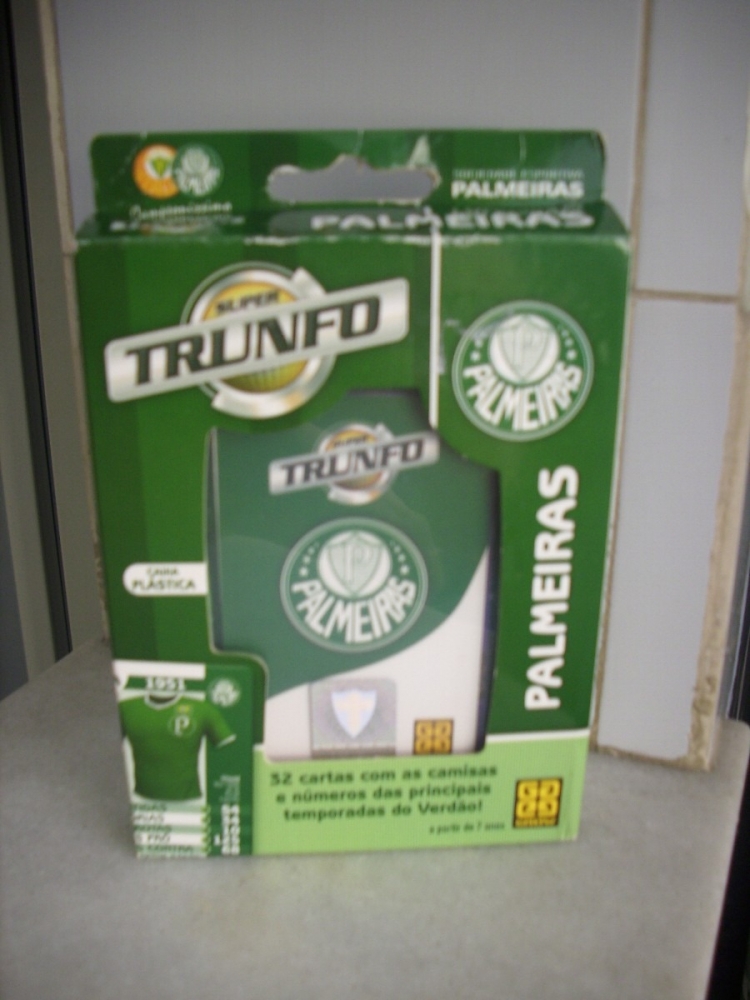 Versão do famoso jogo Super Trunfo, com camisas usadas em diversas épocas pelo time do Palmeiras. Escolha uma característica; compare as cartas de todos os jogadores; e quem tiver o maior valor leva todas as cartas em disputa. Ganha quem conseguir todas as cartas.