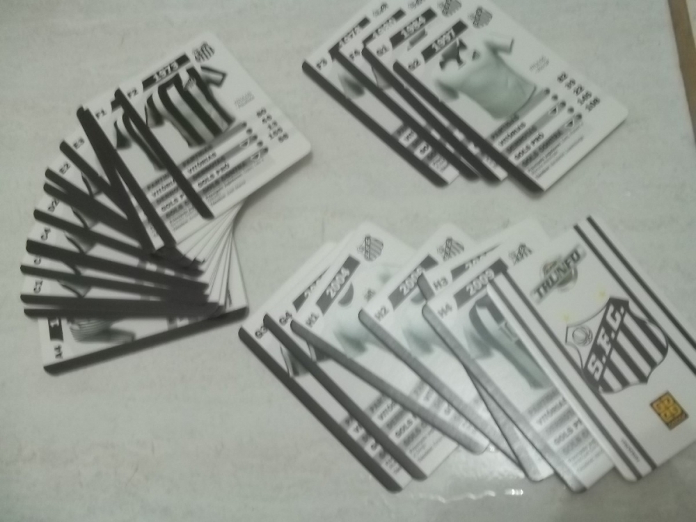 Versão do famoso jogo Super Trunfo, com camisas usadas em diversas épocas pelo time do Santos. Escolha uma característica; compare as cartas de todos os jogadores; e quem tiver o maior valor leva todas as cartas em disputa. Ganha quem conseguir todas as cartas.