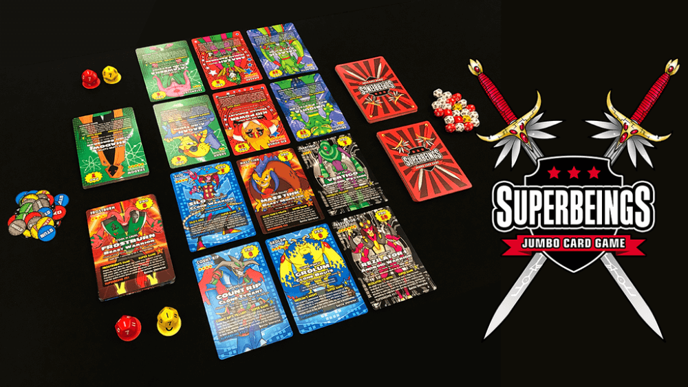 Superbeings é um relançamento do jogo de cartas Humaliens com estilo de anime lançado em 2003 pela AEG com um novo design e enredo pelo criador Rick Medina. Superbeings apresenta um conceito de 6-Super Team de jogar com vários atacantes de linha de frente e reforços de backline múltiplos com o objetivo de vencer por uma das três maneiras: (1) nocautear a linha de frente do seu oponente, (2) nocauteando 5 Supers, ou (3) nocauteando 15 pontos de classificação da Supers. O jogo usa uma variedade de mecanismos de rolagem de dados D6, D12 e D20 para estabelecer ações, ataques e mais.