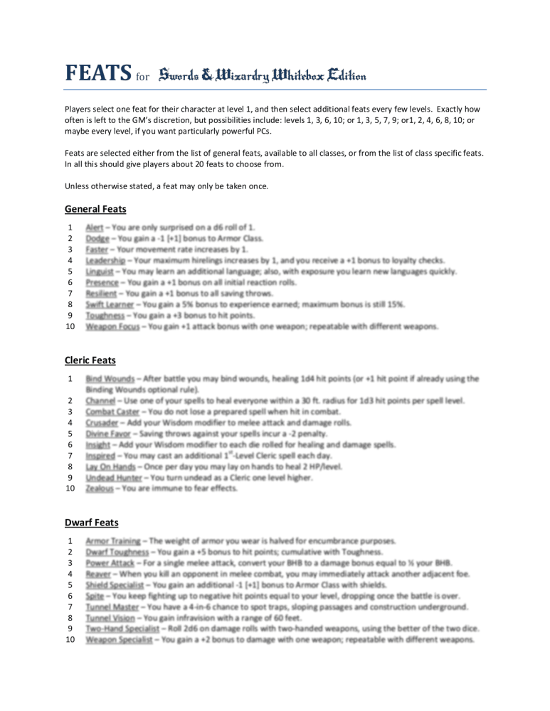2. Swords & Wizardry - Feats for Swords & Wizardry Whitebox Edition