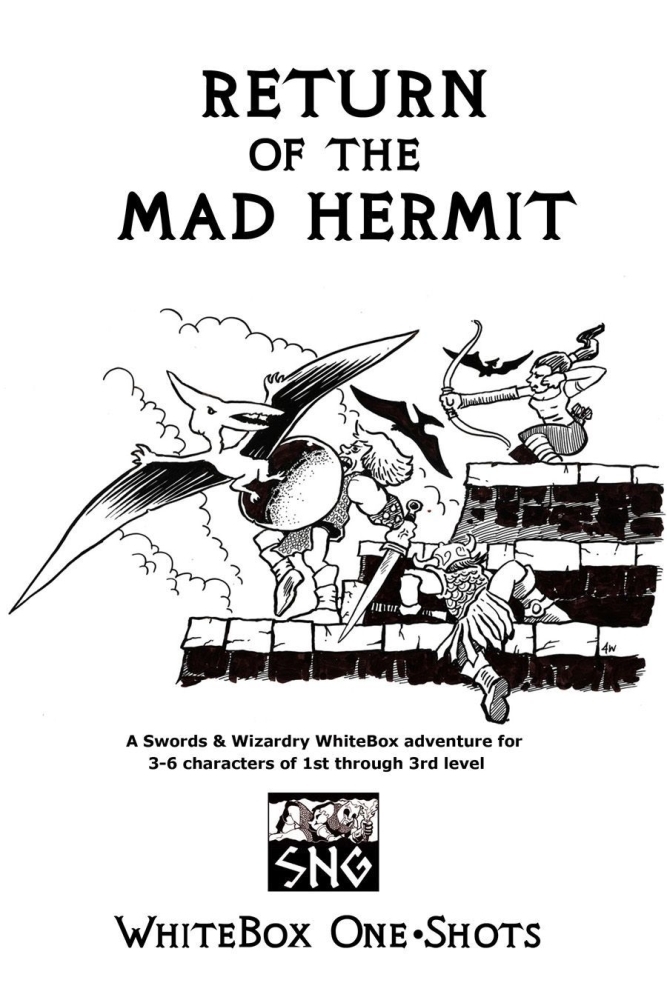 Return of the Mad Hermit é uma curta aventura Swords and Wizardry WhiteBox projetada para 3-6 personagens de 1º-3º níveis (cerca de 12 níveis no total), mas é adequada para qualquer jogo OSR. Return of the Mad Hermit é uma brincadeira de salto dimensional que contém uma mistura de resolução de problemas e elementos de exploração de masmorras. Uma ampla gama de monstros e desafios estão envolvidos, então uma variedade de classes é recomendada. A aventura pode ser "colocada" em qualquer cenário selvagem ao ar livre sempre que os personagens acamparem para a noite.