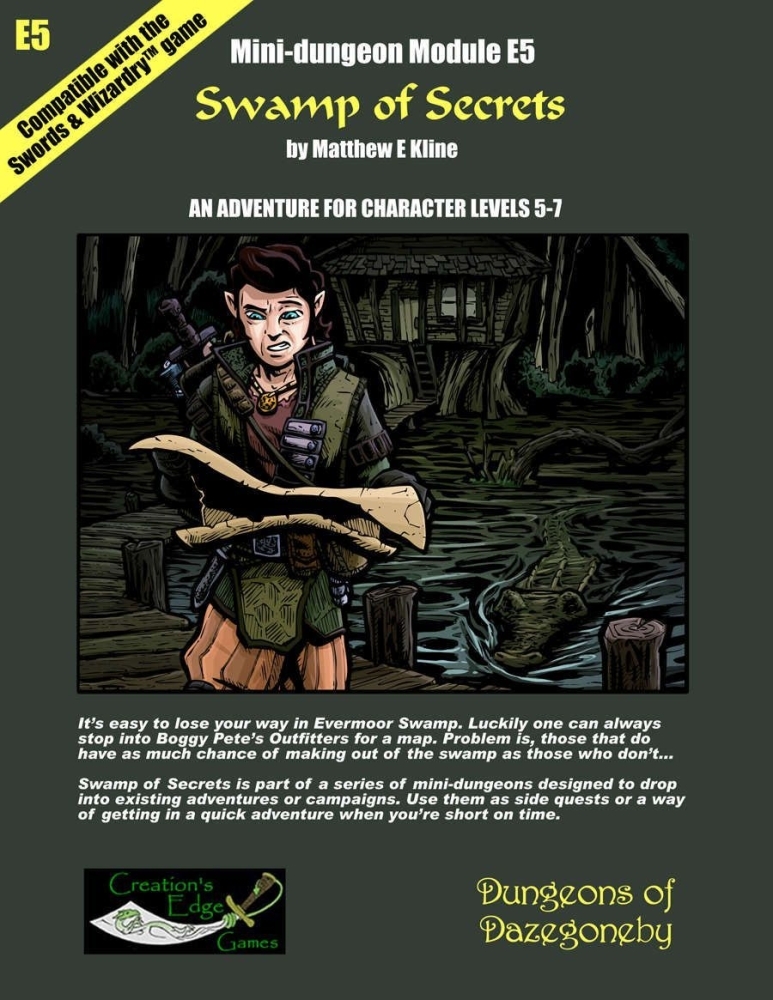 Swamp of Secrets faz parte de uma série de mini-dungeons projetadas para cair em aventuras ou campanhas existentes. Use-as como missões secundárias ou uma maneira de entrar em uma aventura rápida quando estiver com pouco tempo.