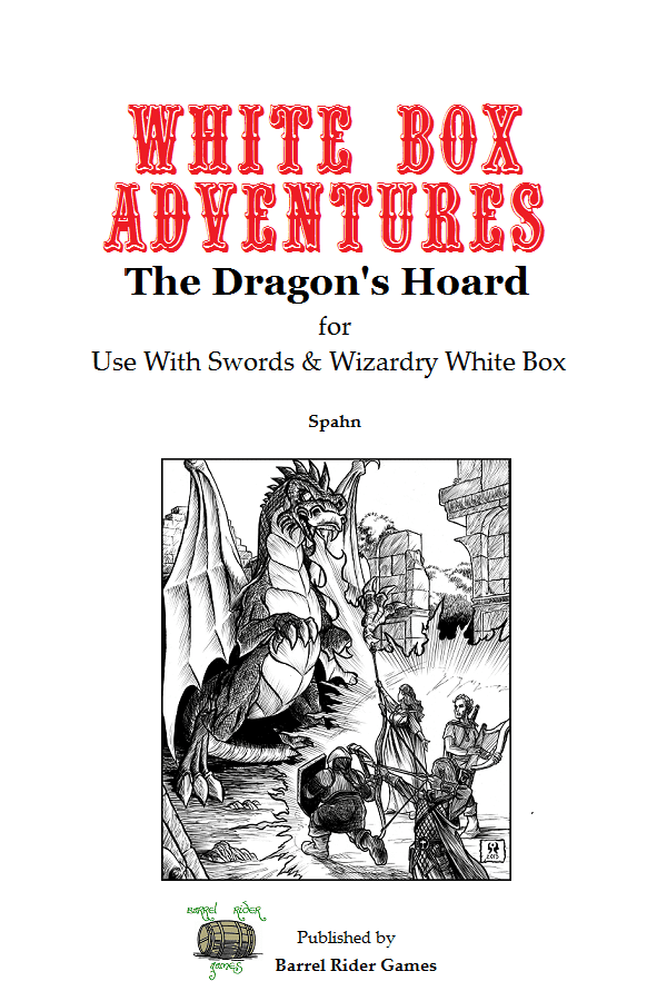A primeira trilogia de White Box Adventures atinge seu clímax ardente com The Dragon's Hoard, uma aventura para entre seis e oito personagens de 7º a 9º nível para Swords & Wizardry WhiteBox!. Depois de derrotar os wererats de Willowford e descobrir o terrível segredo do Nameless Wizard em sua torre escondida, um bando de bravos heróis deve enfrentar a passagem vulcânica em chamas e desafiar um antigo dragão vermelho e seu exército de gigantes de fogo! O destino de Willow Valley está em suas mãos! Apresentando novos monstros, armadilhas tortuosas e um final climático para a história que começou em The Wererat's Well e continuou em The Wizard's Tower, esta aventura pode ser jogada como um encerramento da trilogia ou ficar completamente por conta própria. Você consegue enfrentar o Keep of the Flaming Pass e reivindicar o tesouro do dragão?