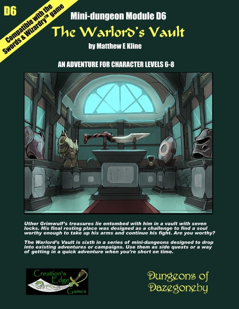 A Warlord's Vault é a sexta de uma série de mini-masmorras projetadas para cair em aventuras ou campanhas existentes. Use-as como missões secundárias ou uma maneira de entrar em uma aventura rápida quando estiver com pouco tempo.