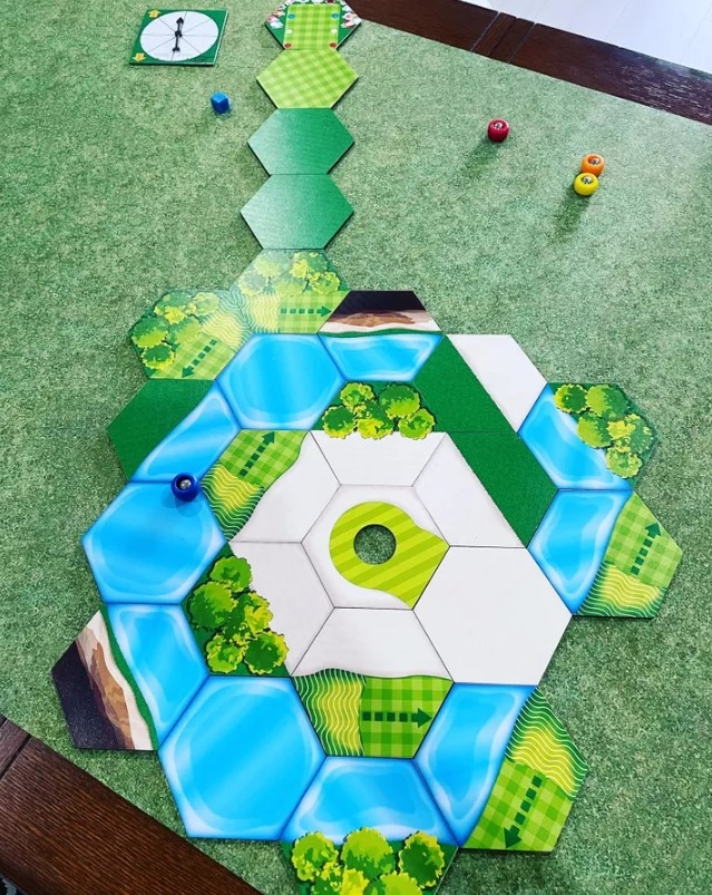 Usando 25 ladrilhos de terreno de madeira de dois lados, você decide o layout do percurso e o torna tão fácil ou difícil quanto quiser. O jogo vem com uma Tee Box e vários "buracos" diferentes. Você completa o percurso adicionando ladrilhos que incluem brutos, obstáculos de areia, árvores, obstáculos de água e um penhasco, bem como os ladrilhos de fairway. O jogo inclui quatro bolas que são basicamente peças de mini-shuffleboard que você deve mover da caixa do tee para o buraco, enquanto tenta evitar os perigos como no golfe real.