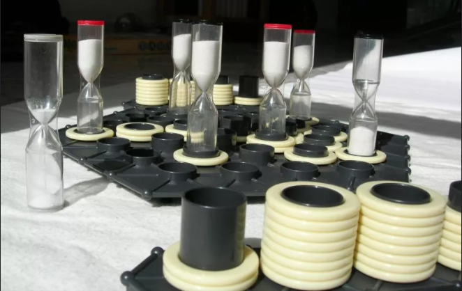 O tabuleiro hexagonal tem vários orifícios para as peças de jogo únicas. Cada jogador usa ampulhetas como suas peças, e uma vez é simplesmente mover-se para um espaço adjacente, virando o cronômetro no processo. O número de vezes que cada espaço do tabuleiro pode ser ocupado é limitado, mas os espaços mais centrais podem ter mais tráfego. O objetivo do jogo é simplesmente ter qualquer uma das suas peças móveis quando as peças do seu oponente estiverem travadas no lugar ou fora da areia.