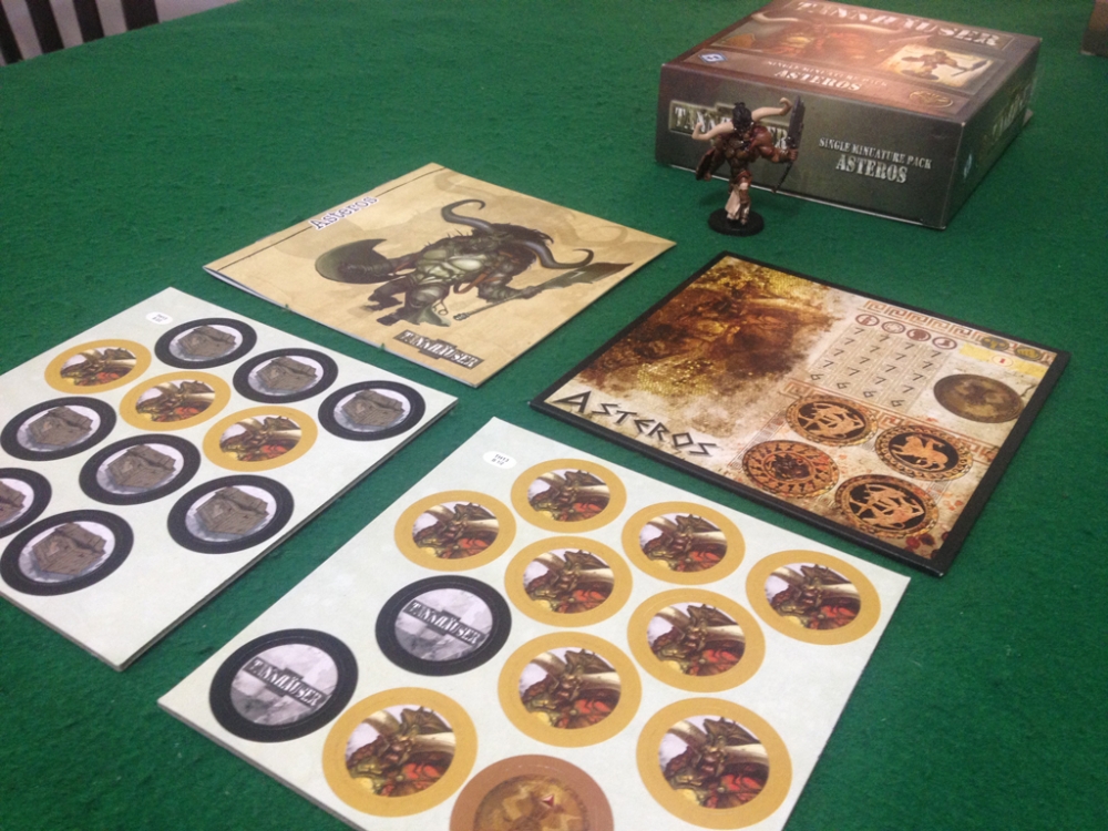 Asteros vem com uma figura pré-pintada do lendário Minotauro, equipado com regras, símbolos, e um cenário único. Sem alianças anteriores, Asteros pode ser usado com qualquer facção. Asteros é um herói épico, ou seja, para colocar ele em seu time é necessário substituir um herói e um soldado.