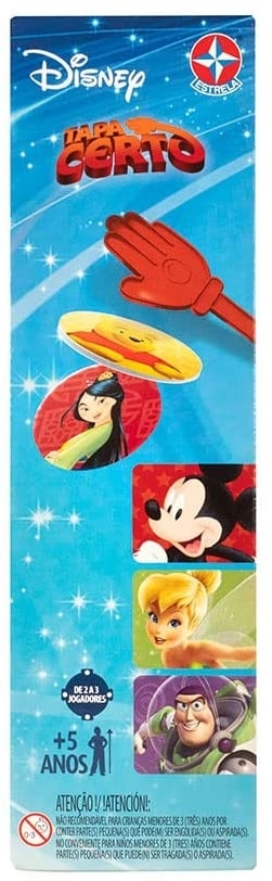 O clássico Tapa Certo com os personagens da Disney para deixar sua brincadeira ainda mais divertida! Divirta-se junto de seus amigos usando as "mãozinhas" com ventosas para pegar imagens do Mickey, da Dory, e até do Buzz Lightyear, e teste sua habilidade nesse incrível jogo de ação! As cartas quadradas ficam viradas para baixo enquanto as cartas redondas ficam viradas para cima. Um jogador vira uma carta quadrada revelando a imagem, e rapidamente os jogadores devem dar um tapa com sua mãozinha plástica na carta redonda de mesma imagem. Use sua memória e agilidade para ser o mais rápido!